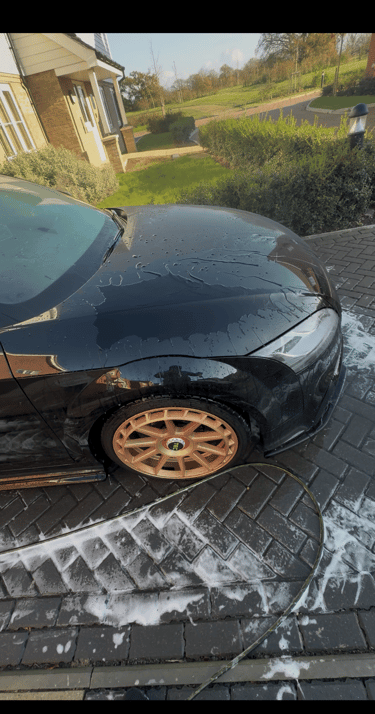 Prewash applied to lower section of the car, wheels and arches to release dirt with a layer of snow foam over the top for drag then allowed to sweep and breakdown the dirt before being rinsed